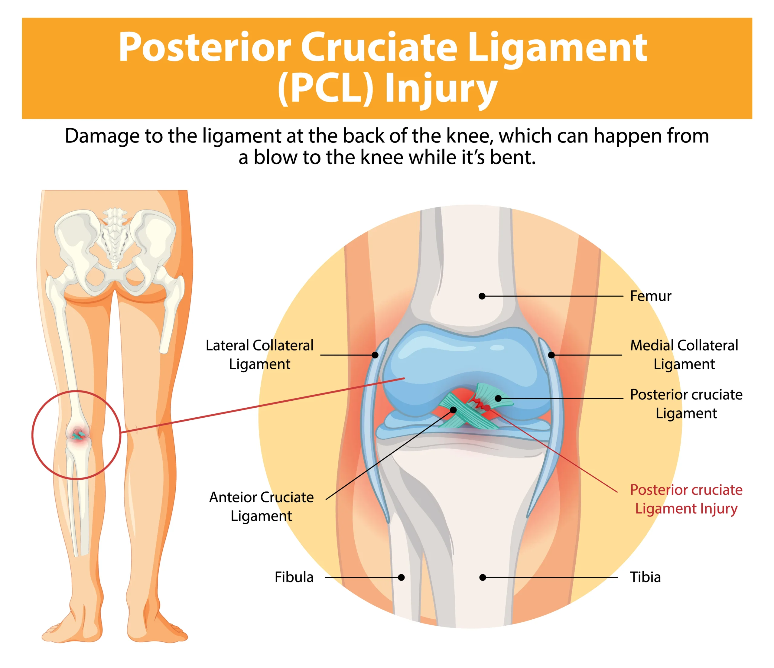 The posterior cruciate ligament (PCL) is a important ligament within the knee joint . It is located at the back of the knee.PCL is tough bands of tissue similar to the anterior cruciate ligament (ACL) , connects the thigh bone (femur) to your shin bone (tibia). Although it is larger and stronger than the ACL, but PCL can also be torn.